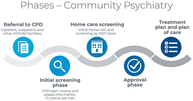 The community psychiatry department of Al Amal hospital, Emirates Health Services Establishment (EHSE), was founded in 2016 with the vision to provide accessible, holistic and recovery-oriented care to patients with chronic and severe mental illnesses. The goals revolved around decreasing relapses, improving patients' quality of life and decreasing caregiver burden.